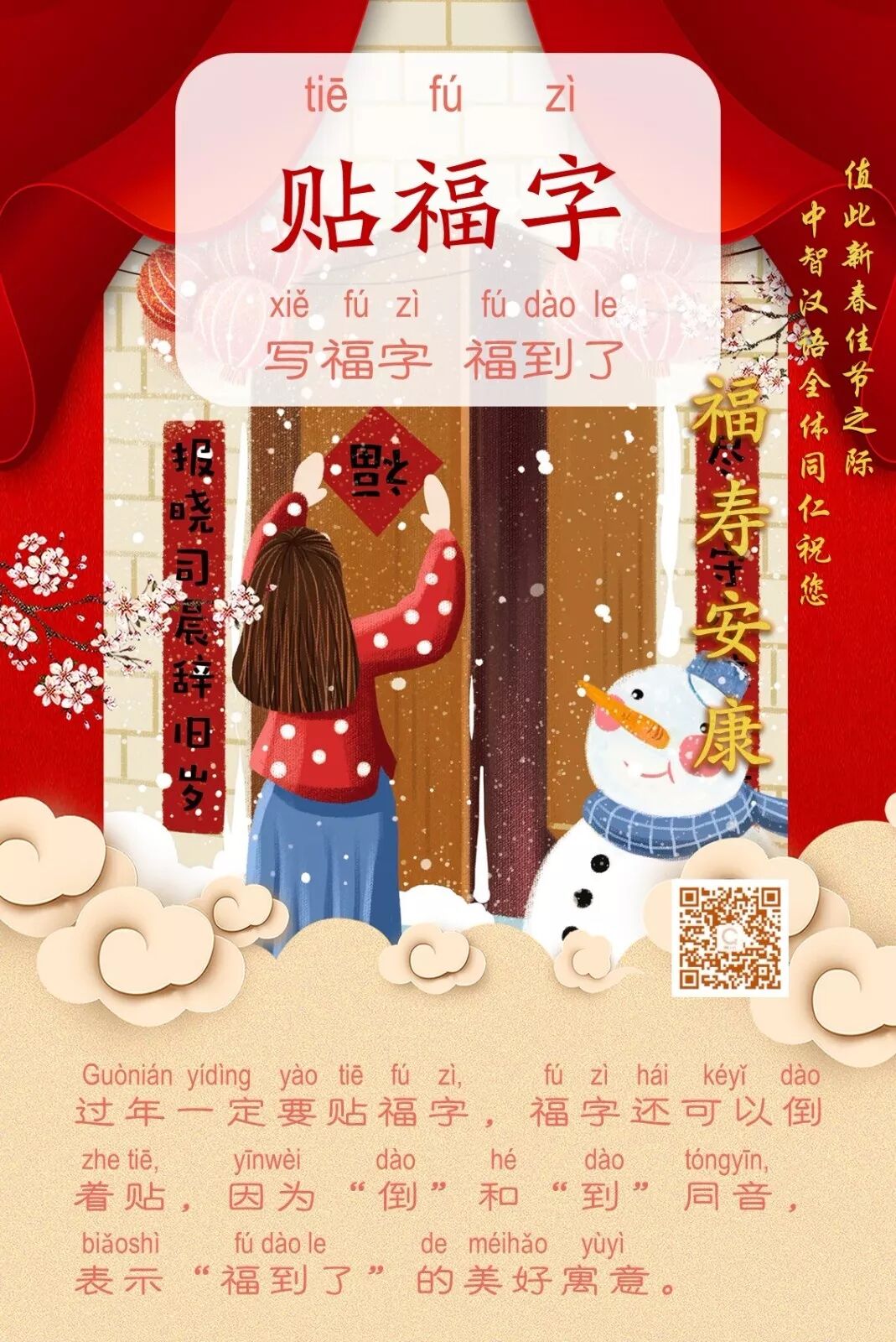 过年一定要贴福字 福字还可以倒着贴 因为 倒 和 到 同音 表示 福到了的美好寓意